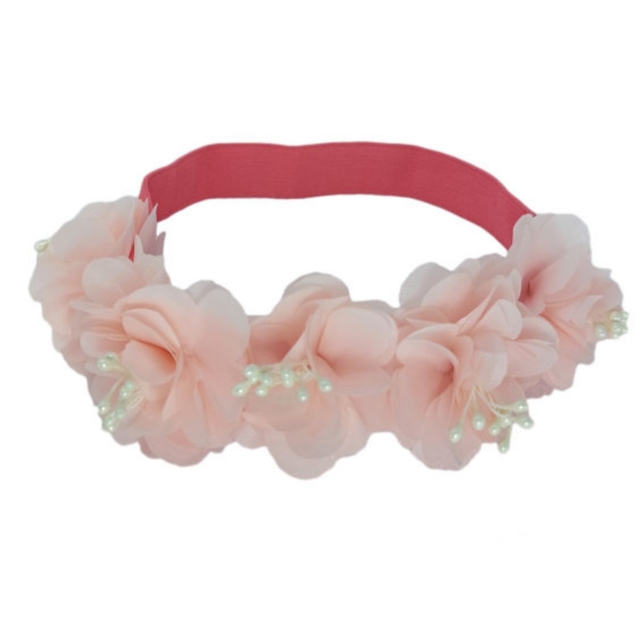پنج تا گل گلبهی داره که با پرچم های گل به کش پهن وصل شده اند و دخترانه هست و یه استایل شیک و زیبایی بهشون میده و با موهای عقب رفته با این هدبند که زیبایی صورتشون بیشتر نمایان میشه و یه عکس با این تل خاطره ی ماندگار لحظات ناب دختراست.